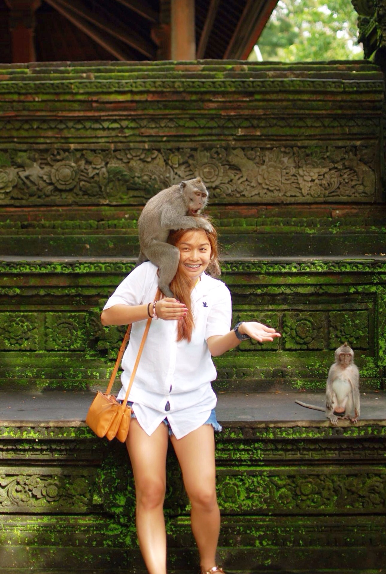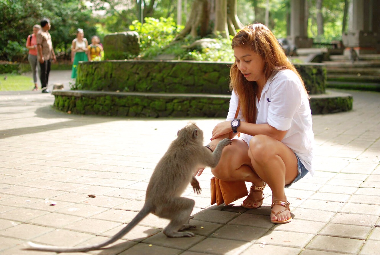 Before going inside, our tour guide Suci told us that she brought rambutan. Monkeys there are not satisfied with bananas anymore, they want something different. I had one rambutan inside my hand, and when I opened my hand, here’s what happened. This picture didn’t show how scared I was, but I really was! There were tourists looking at me so yeah I was embarrassed, Suci told me to stay calm. It was super fun though! π