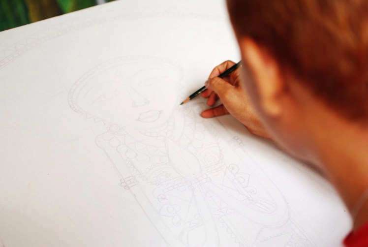 Then we went to the factory of Hand painted and Batik Fabric.
