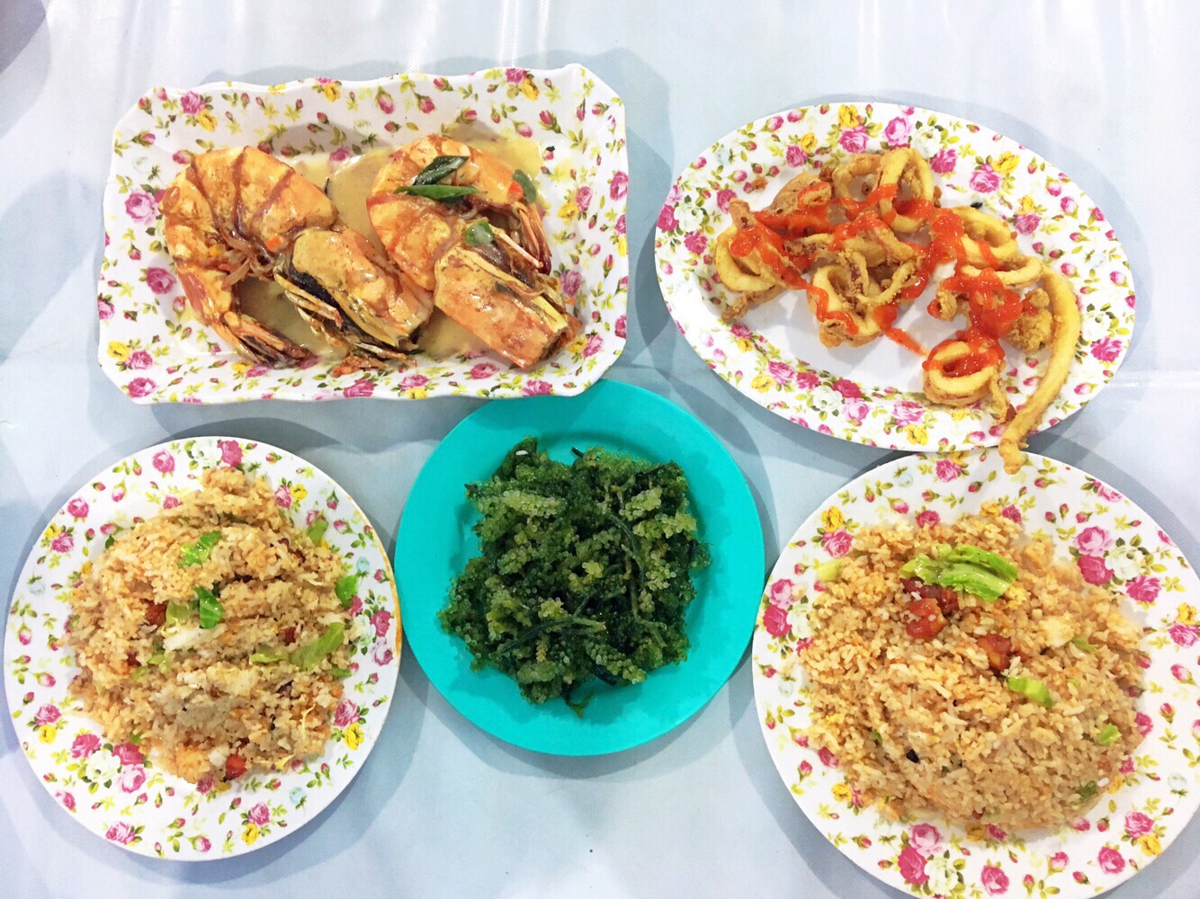 And our dinner: Buttered Tiger Prawns, fried squid, seaweeds and fried rice. Omg!