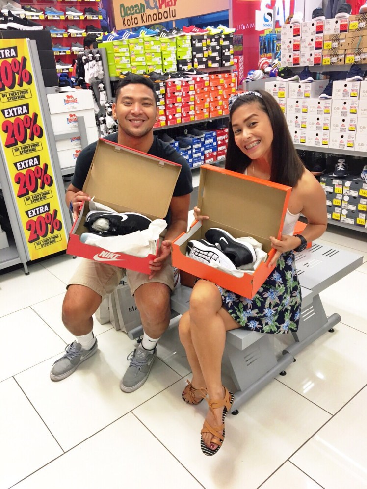So, went back to Oceanus Waterfront Mall since shoes and sports stuff were on sale. I bought Kern a big varsity bag for 135MYR, the price of that bag in Manila is around Php5,000. And since it’s our anniversary, we exchanged gifts.😊 We got our Nike shoes half the price here compared to Manila. Yay!😎 (Getting ready to go back to the gym)