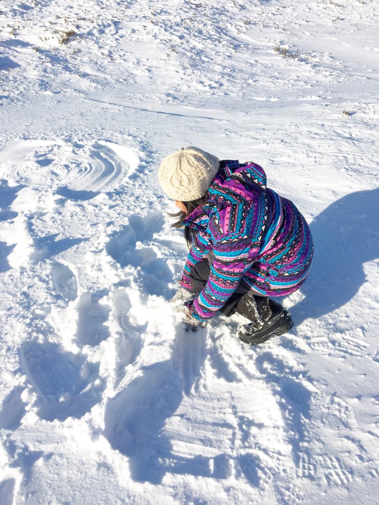 After lunch, we went back and played with the snow. It was snowing!😊
