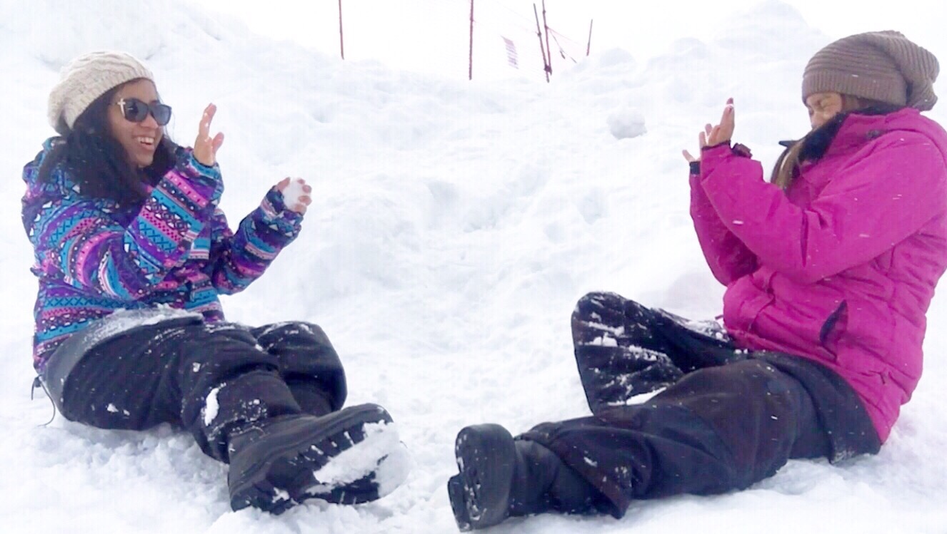 After lunch, we went back and played with the snow. It was snowing!😊