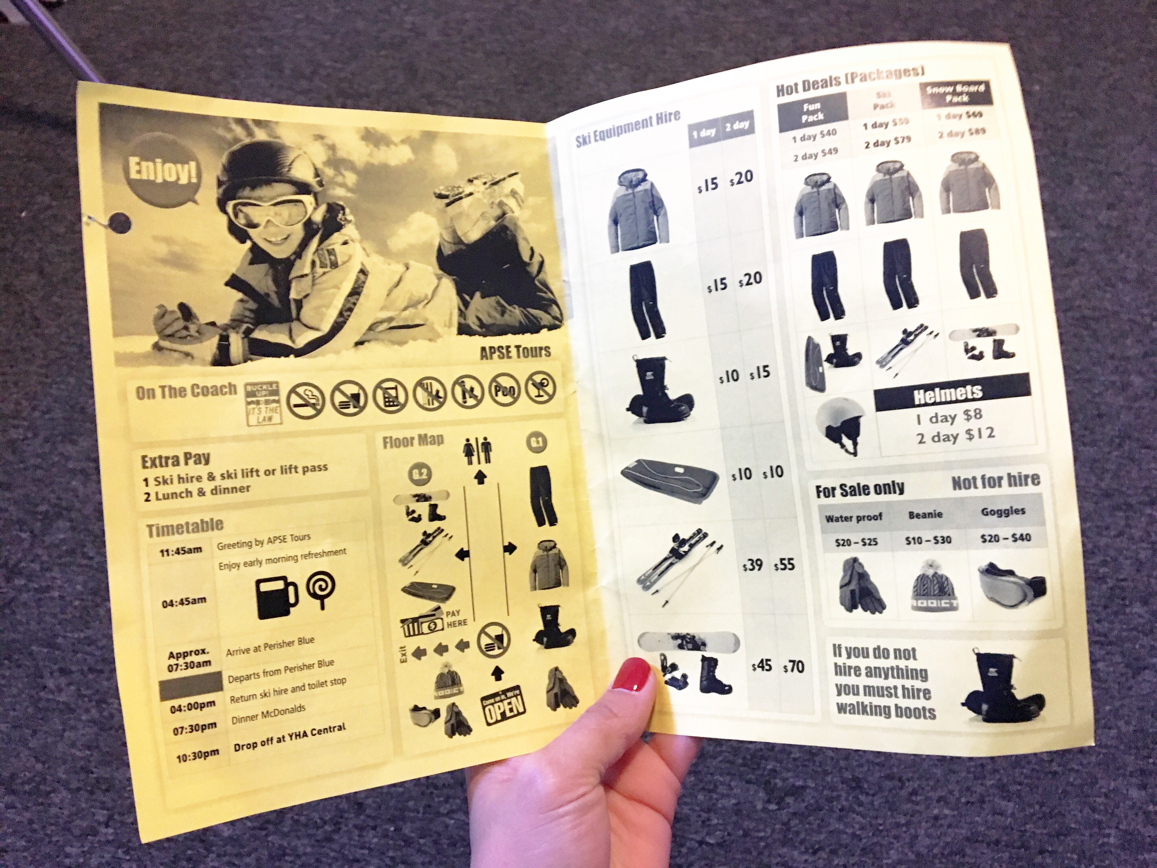 We opted for the Fun Pack which includes a jacket, pants, boots and toboggan for $40 AUD.