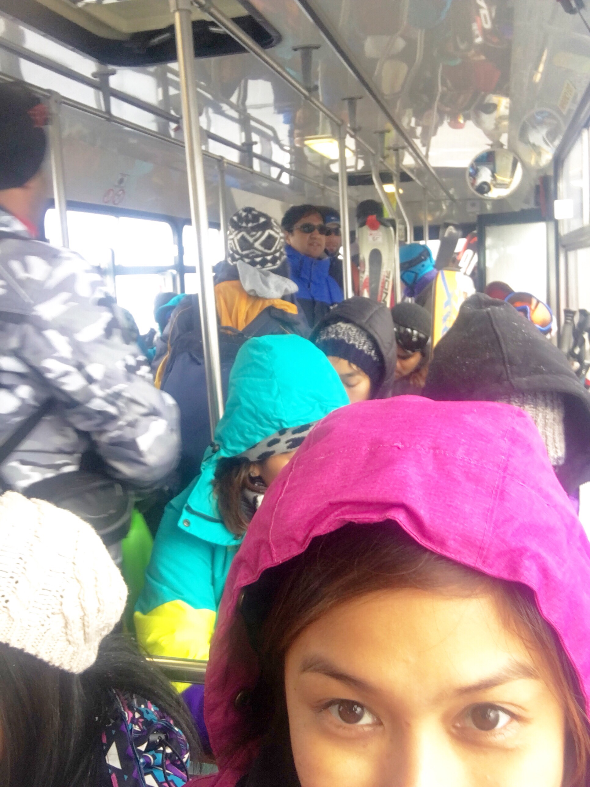 We all have to be back by 3:00 PM because the bus leaves exactly 3:45 PM to Sydney. This was the situation inside the shuttle on the way back to Smiggin Holes. I guess everyone enjoyed, at the same time tired.