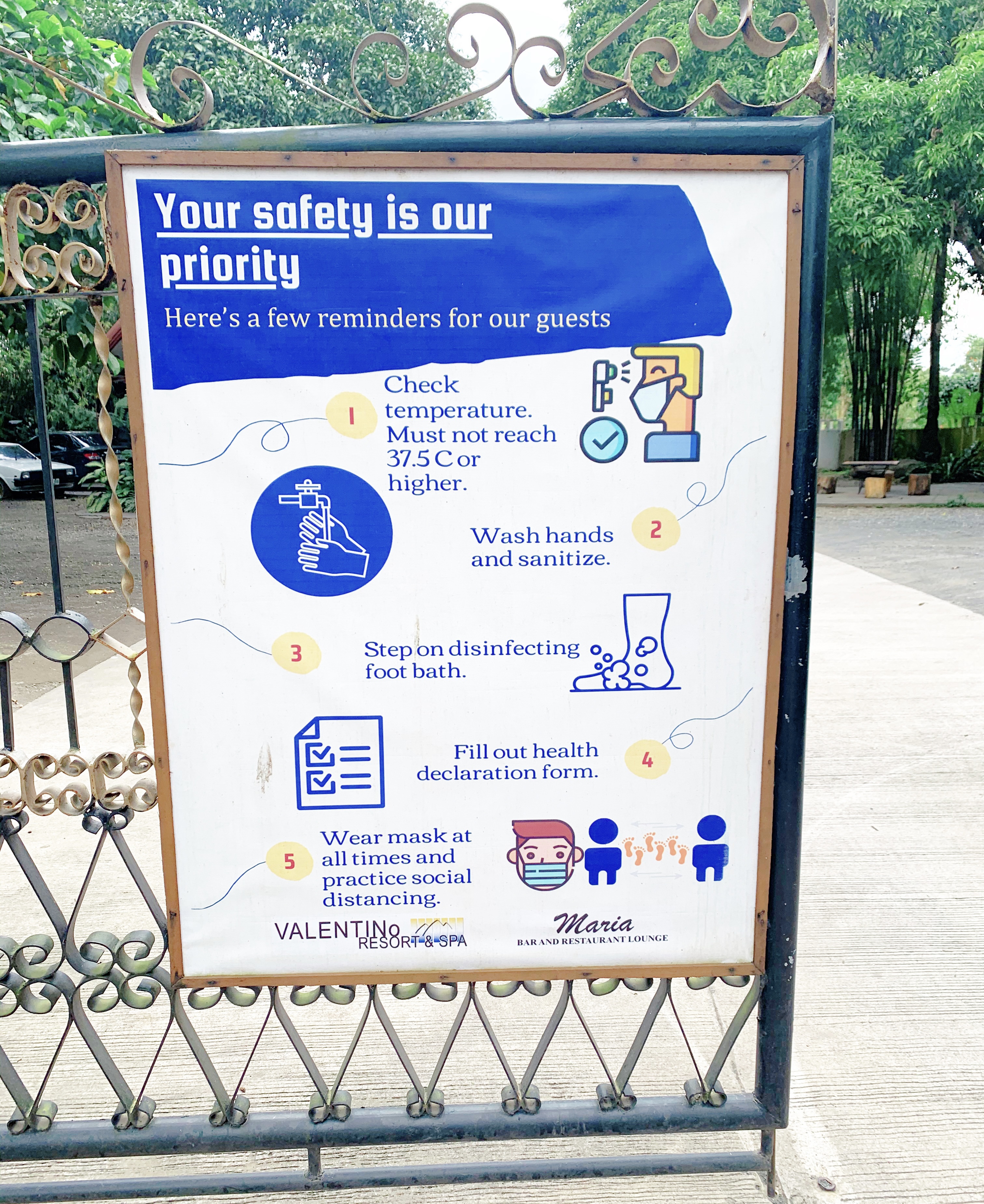 Our car was disinfected before entering the gate, and they also ask you to wash your hands before going into the resort.